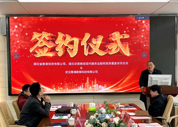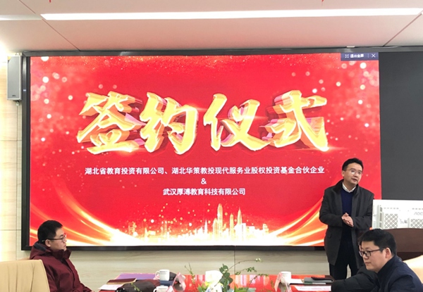 2020年1月1日上午,年之始、月之始、日之始。湖北省教育投資有限公司(以下簡稱湖北省教投)、湖北華策教投現(xiàn)代服務業(yè)股權投資基金合伙企業(yè)(以下簡稱湖北華策教投)與武漢厚溥教育科技有限公司(以下簡稱厚溥)合作簽約儀式在武漢花山軟件新城厚溥辦公樓舉行,由湖北省教投、湖北華策教投共同投資厚溥,三方優(yōu)勢互補,積極創(chuàng)新提高IT人才供給側(cè)效能,助力IT產(chǎn)業(yè)發(fā)展及區(qū)域經(jīng)濟轉(zhuǎn)型升級。