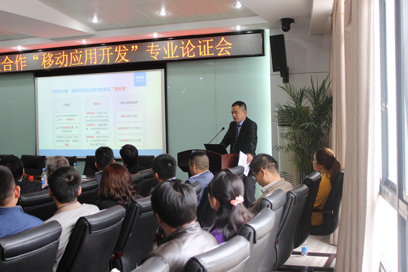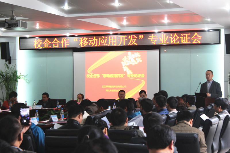 為滿足行業(yè)、企業(yè)對移動應(yīng)用開發(fā)技術(shù)人才的需求,進一步推動產(chǎn)教融合、校企合作,提高人才培養(yǎng)質(zhì)量,搭建行業(yè)、企業(yè)、高校的溝通平臺,武漢厚溥教育科技有限公司與湖北科技職業(yè)學(xué)院于2015年11月07日在光谷軟件園共同舉辦校企合作“移動應(yīng)用開發(fā)”專業(yè)論證會。