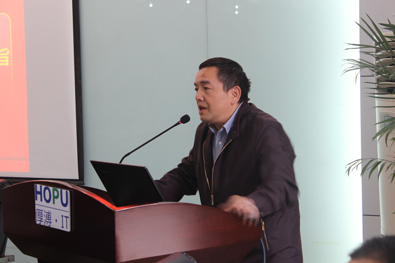 會議第四項武漢厚溥企業(yè)常務(wù)副總翁高飛介紹公司產(chǎn)品與服務(wù),翁總介紹了厚溥價值、厚溥產(chǎn)品與服務(wù)、厚溥云平臺以及厚溥公司如何利用信息化和大數(shù)據(jù)提升管理效率,最后用四個思維做了總結(jié)——用戶思維,以用戶為核心;簡約思維,從用戶需求角度規(guī)劃產(chǎn)品;極致思維,用產(chǎn)品與服務(wù)提升用戶價值和體驗;大數(shù)據(jù)思維,利用大數(shù)據(jù)提升效率。