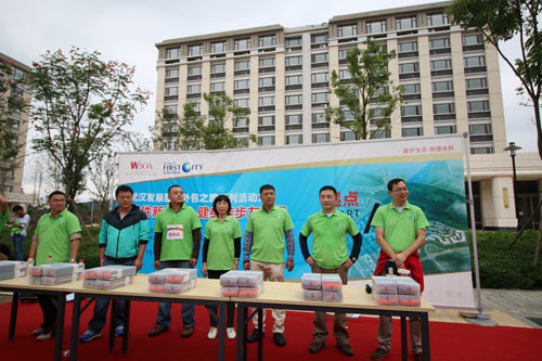 “全體都有,預備——齊步走!”9月19日上午10時20分,隨著裁判長的一聲號令,發(fā)令槍響,2014 WSOA武漢服務外包發(fā)展之路系列活動——漫步生態(tài)·浪漫金秋“軟件新城杯”健身徒步友誼賽盛大召開。