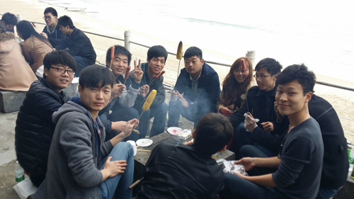 學生正在海邊燒烤